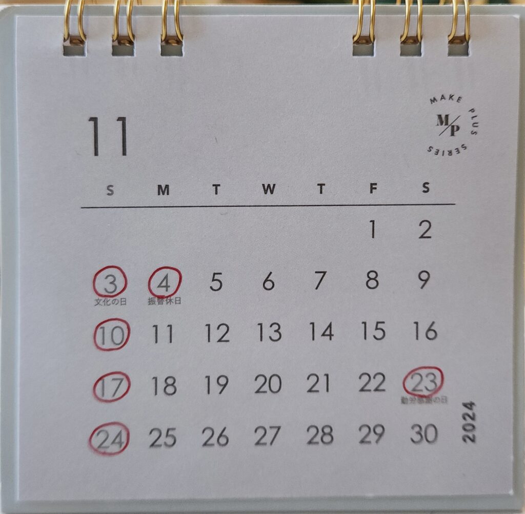 11月の営業日